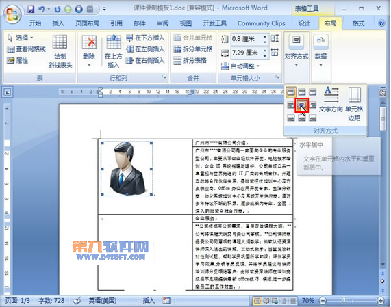 ④調整圖片大小以及位置,對齊方式選為水平居中。
