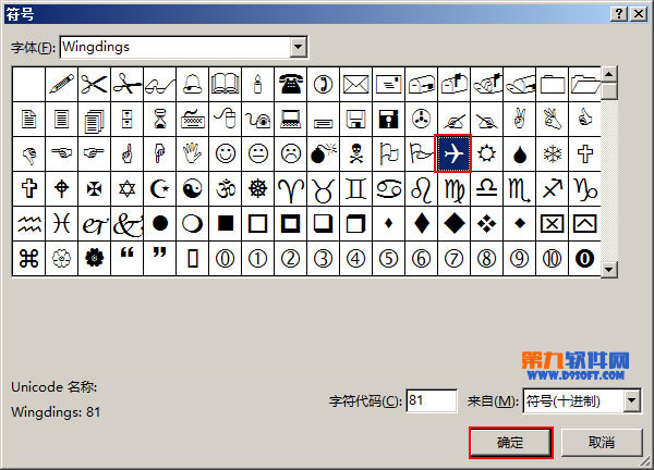 3、在彈出的“符號”窗口中,我們選擇自己喜歡的符號,并單擊“確定”按鈕。
