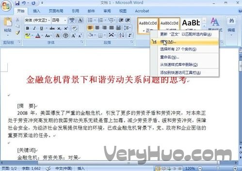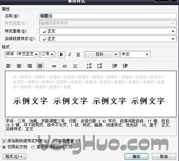當然標題 1,標題 2,標題 3 的屬性(如字體大小,居中,加粗,等等)可以自行修改的。修改方法:右鍵點擊“標題 1”選“修改”,會彈出修 改菜單,您可以根據自己的要求自行修改。
