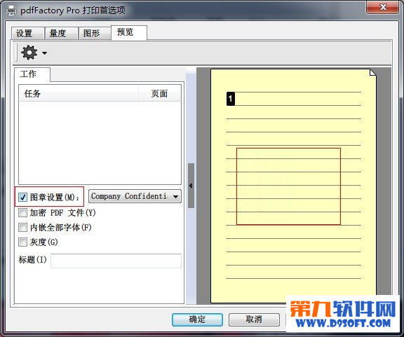 4、改好水印后,記得在預覽菜單下,把圖章設置選項選中,右側會有水印預覽,設置完成后點擊確定即可開始轉換。