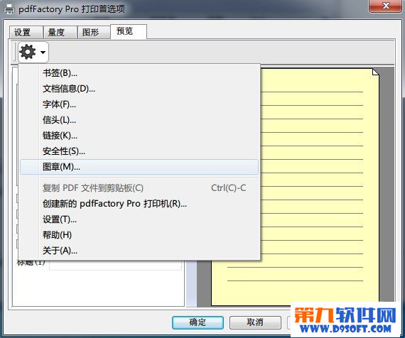 3、在打印首選項的預覽下,單擊齒輪樣式按鈕,選擇圖章。