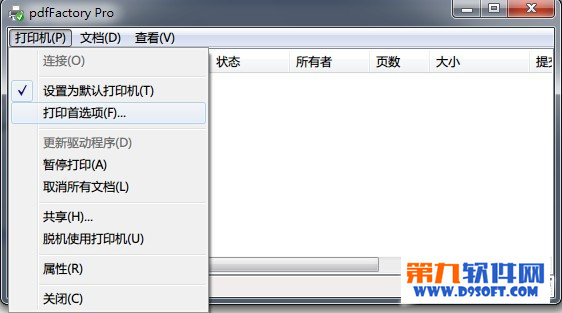1、安裝完pdfFactory Pro軟件之后,在開始菜單中打開打印機對話框。