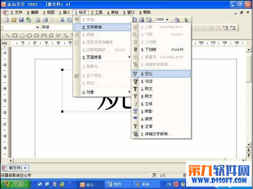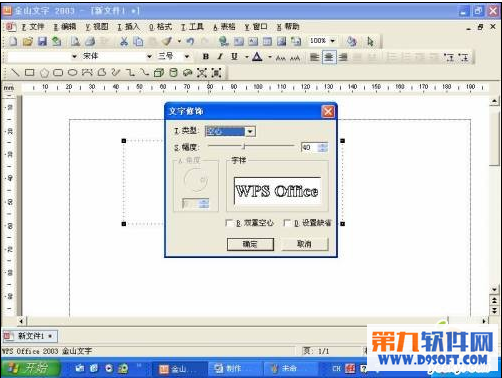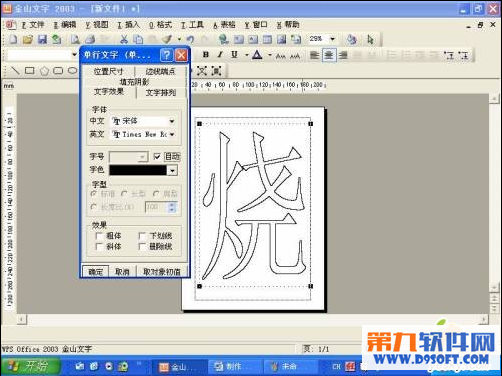 8、再一次打開執行“對象屬性”對話框,在“文字效果”選項中將字型設為“標準”,再將字號設為“自動”,現在你就能看到一個非常漂亮的空心大字。