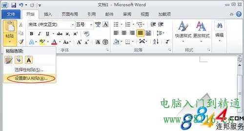 1、同樣復制網頁中的內容后進入Word2010,點擊左上方的“粘貼”箭頭,在彈出的“粘貼選項”中選擇“設置默認粘貼”;
