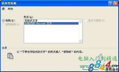 或者在“粘貼選項”中選擇“選擇性粘貼”,然后在彈出的窗口中選擇“無格式的 Unicode”確定,同樣也可以清楚超鏈接和圖片等樣式。