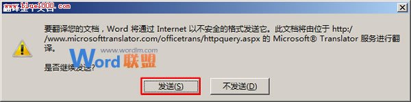 4.對(duì)彈出的警示框“翻譯整個(gè)文檔”點(diǎn)“發(fā)送”
