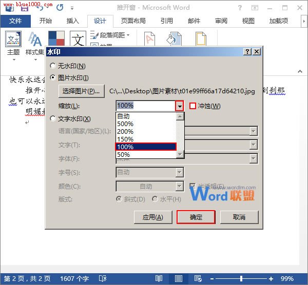 blue1000今天的word 2013教程:教你DIY圖片水印的方法,你學會了嗎?
