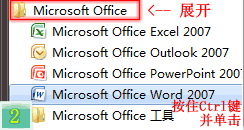 2、按住鍵盤上的 Ctrl 鍵,然后單擊您要運行的 Microsoft Office Word 2007,當它開始運行后再松開Ctrl鍵;