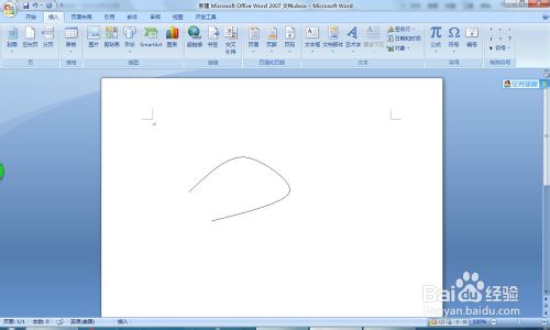 回到word編輯區,光標變成十字形,在空白處單擊,按鈕鼠標左鍵不放,移動鼠標,找到下一個點單擊,再移動鼠標,單擊,可以根據單擊的路徑繪制出一條“曲線”來;但要不在同一線的至少三個點才能形成。