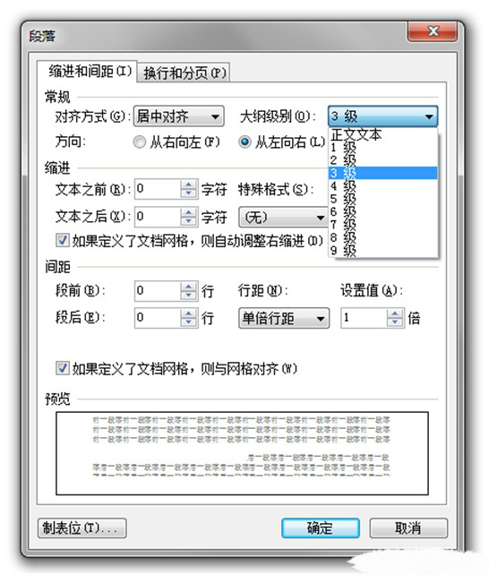 標題居中、段落左右對齊等也不用很麻煩地每次都去人為地設置,也有更省事辦法:仍然到“段落”設置窗口,依次在“常規”一組的“大綱級別”下拉列表框中選擇“正文”“1級”“2級”……“9級”,然后分別設置左側的“對齊方式”,對于正文我們選擇“左對齊”或“兩端對齊”,而對于1到9級標題,通常版式是選擇“居中對齊”。這樣設置之后,當你輸入各級標題或正文并應用了這種樣式后,各自的對齊便自動完成,不需要人為去設置或調整。