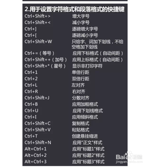 3、用來設置字符格式和段落格式的快捷鍵