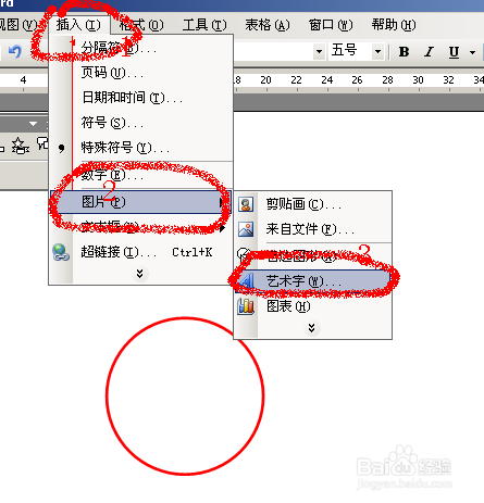 點擊“插入”菜單,選“圖片”中的“藝術字”一行三列,輸入如:龍強電腦百度經驗,利用旋轉、彎曲等工具,調整適合大小。