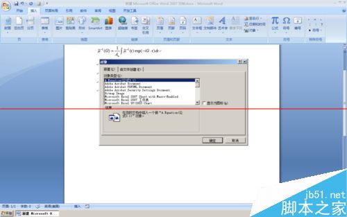 1、首先,打開word,選擇插入—對象—對象(J),會彈出一個對話框,在新建這一選項卡下選擇對象類型為“A Equation(公式3.1)”,點擊確定后就會出現一個編輯框和名為“公式”的工具條。