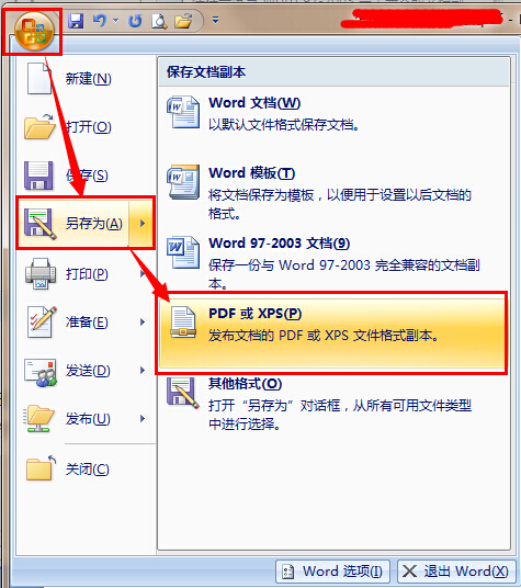 Word 2007可以直接點擊按鈕里的另存為那里有“PDF或XPS”加載項,如果沒有用戶則需要下載一個加載項就可以了。