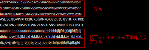 1、可以看到,開啟大寫鍵輸入的大寫英文字母與怪異情況的區別,這是由于我們可能誤按了快捷鍵Ctrl+shift+k鍵引起的,只要我們再按一次Ctrl+shift+k鍵,即可恢復正常的小寫英文字母輸入!