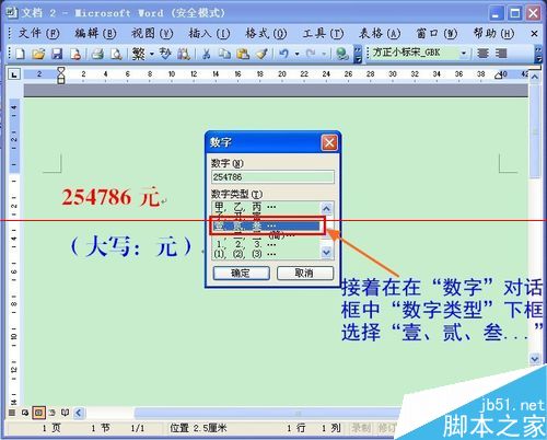 第五步:接著在在“數字”對話框中“數字類型”下框選擇“壹、貳、叁...”