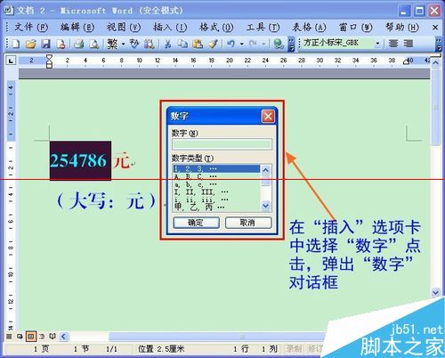 第三步:在“插入”選項卡中選擇“數字”點擊,彈出“數字”對話框。
