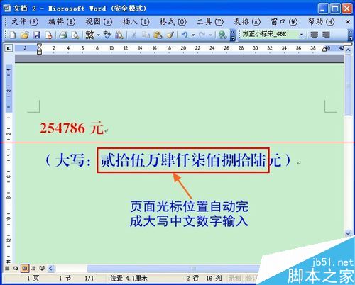 第七步:頁面光標位置自動完成大寫中文數字輸入。
