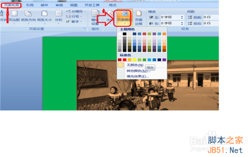 5、找到頁面布局,再找到頁面顏色,可以對圖片的背景顏色進行設置一下,選擇自己喜歡的顏色。