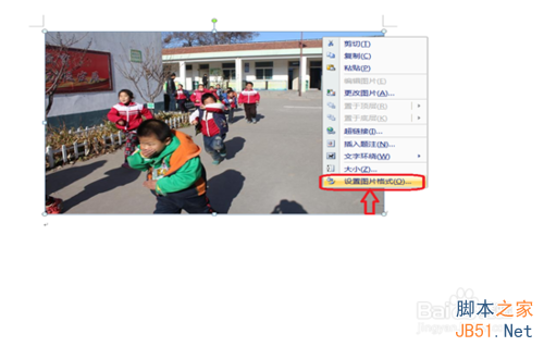 3、鼠標指向圖片,單擊右鍵,找到設置圖片格式,單擊一下,可以對圖片進行設置了,設置圖片的線條顏色和圖片的顏色了。