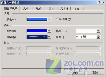 至于賀卡邊框的顏色和線形,可利用“顏色和線條”選項(xiàng)卡“線條”項(xiàng)中的“顏色”、“虛實(shí)”、“線形”和“粗細(xì)”進(jìn)行設(shè)置。如果你不需要邊框,應(yīng)將“顏色”設(shè)置為“無(wú)線條色”。(如圖3)