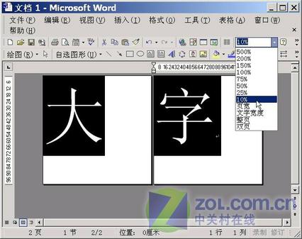 此時我們可以看到Word窗口中漢字明顯大了,為了取得更好的效果。我們單擊工具欄上的比例縮放下拉框,選擇一個合適的比例,就可以看到整體效果了(如圖3)。