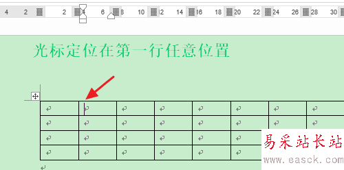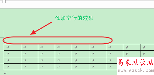 我們將鼠標(biāo)光標(biāo)定位在表格內(nèi)的最前面(務(wù)必是最前),然后在鍵盤上按下回車鍵,此時(shí)這個(gè)表格的前面就會(huì)多出一段空行,如圖所示...
