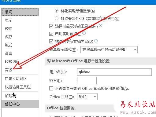4、這時就會打開Word的選項窗口,在窗口中點擊左側邊欄的“高級”菜單項。