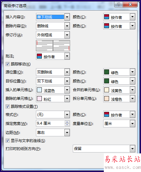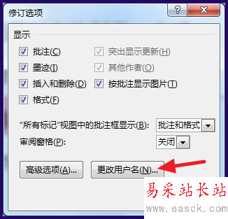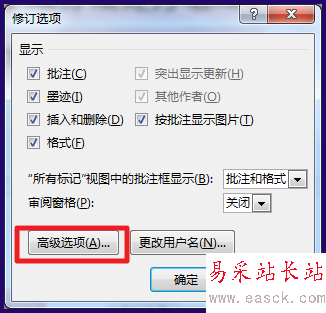 10、如果要更改批注的顏色,點擊【修改選項】的【高級選項】即可選擇要修改的顏色修改