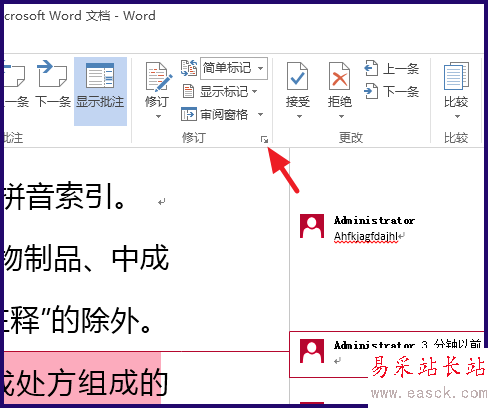 6、如果要更改名字,點擊【審閱】-【修訂】下的修訂選項,即右下角的小圖標