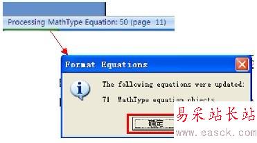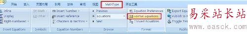 單擊公式編輯窗口右上角的X,退出公式編輯狀態(tài)。單擊“MathType”選項卡,然后單擊“Format Equations”按鈕: