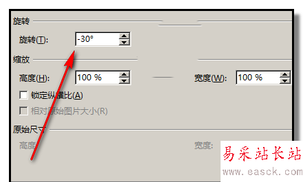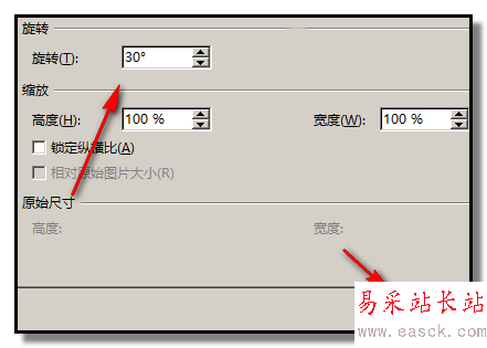 4、彈出一個對話框;在框內(nèi)的旋轉(zhuǎn)這里的輸入框輸入數(shù)字30,然后記得點(diǎn)擊確定。