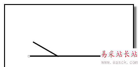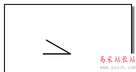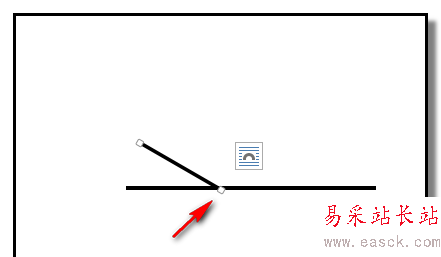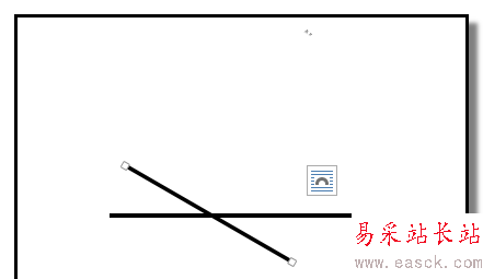 5、點(diǎn)確定后,文檔中的兩條線相交。按住SHIFT鍵,鼠標(biāo)點(diǎn)住斜線的下端,往上提,把兩條線交點(diǎn)下方這一段縮到交點(diǎn)位置。