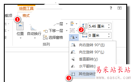 3、保持第二條線的選中狀態(tài),然后,點(diǎn)開格式選項(xiàng)卡,在旋轉(zhuǎn)命令這里點(diǎn)下,彈出的菜單中點(diǎn)其它旋轉(zhuǎn)選項(xiàng)