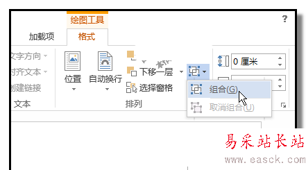 6、選中橫直線,按住SHIFT鍵,鼠標(biāo)點(diǎn)住右邊未端,往左邊推,推到交點(diǎn)位置。一個30角度的角就作出來了。選中這兩條線,點(diǎn)擊格式再點(diǎn)組合命令彈出的菜單中點(diǎn)擊組合;這兩條線即組成一個整體了。