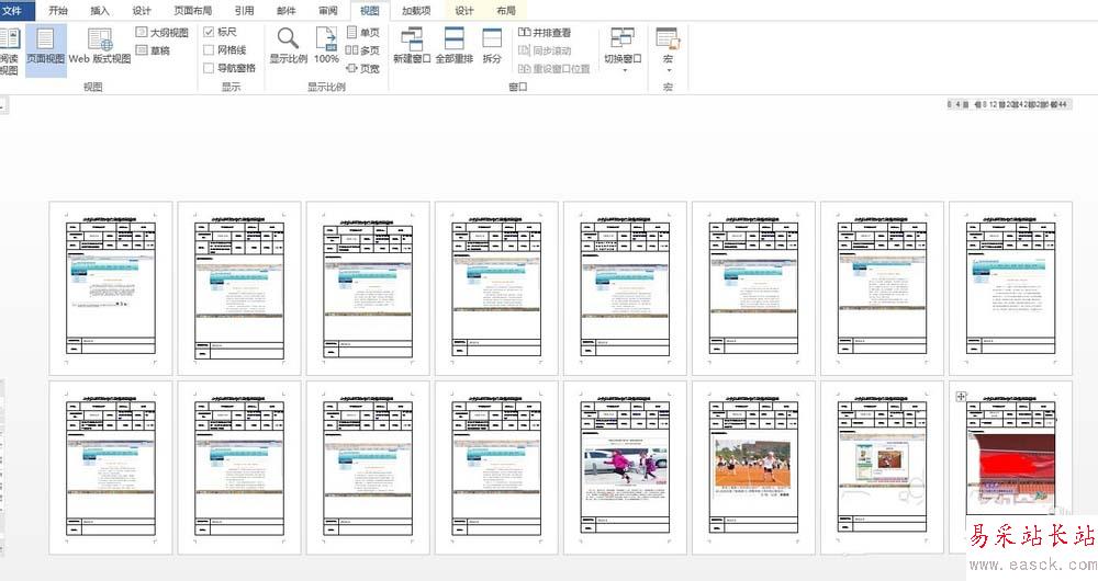 5、現在再改變比例,我們的文件看起來也很清晰了。可以看到一排排的頁面整齊的排列著。