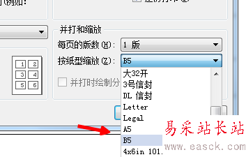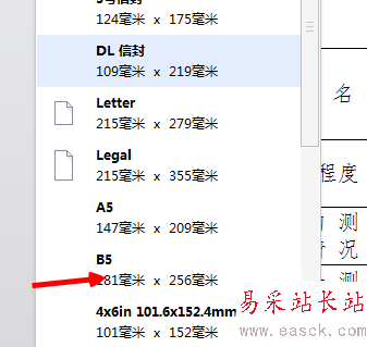 4、我們點(diǎn)擊旁邊的三角的符號(hào),我們可以看到有很多的紙張的,我們就選擇我們要打印的b5就可以了。