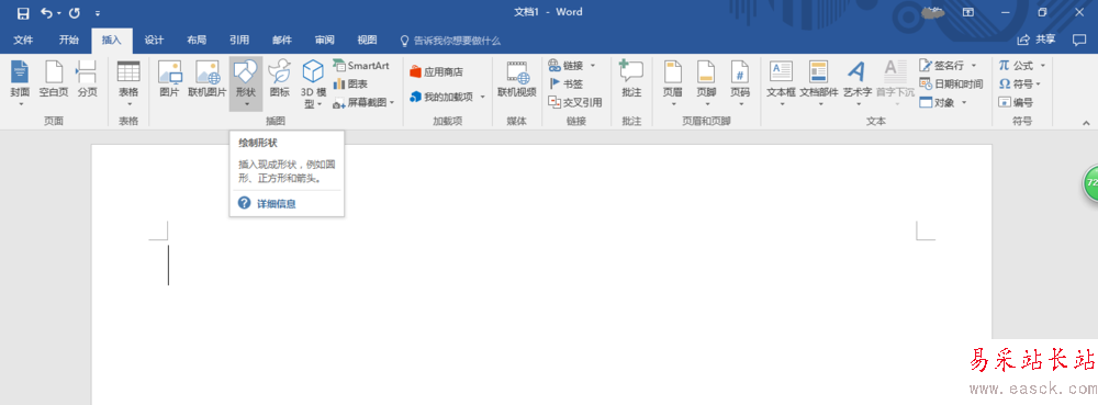 5、點擊"插入→插圖"功能區,選擇"形狀"。
