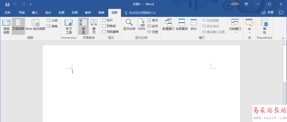 2、選擇新建空白文檔,顯示Word 2016用戶主界面。