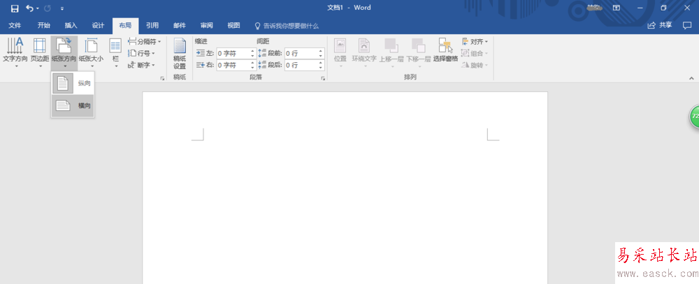 3、點擊"布局→頁面設置",選擇"紙張方向"。