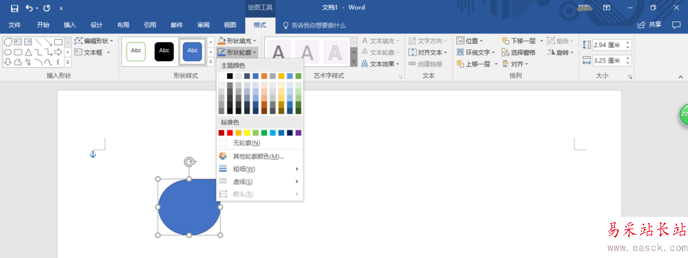 7、點擊"繪圖工具→格式→形狀樣式"功能區,選擇"形狀輪廓→無輪廓"。