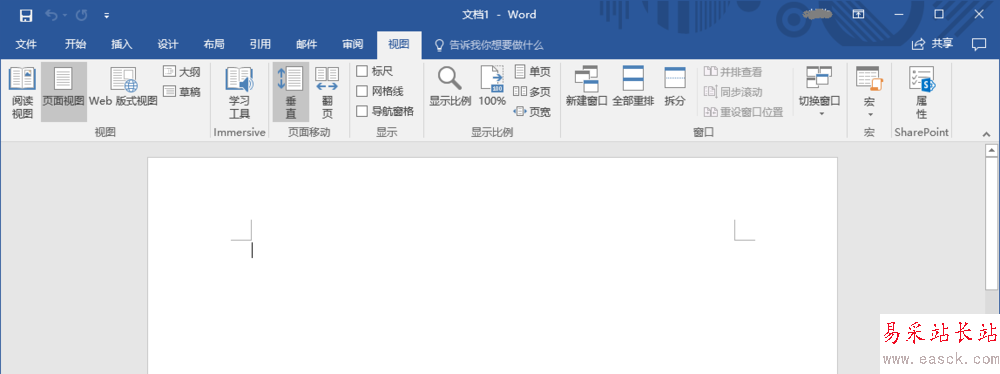 2、選擇新建空白文檔,顯示Word 2016用戶主界面。