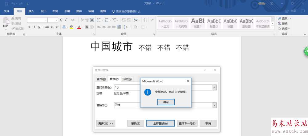 4、"查找內容"輸入^g、"替換為"輸入不錯,點擊全部替換。