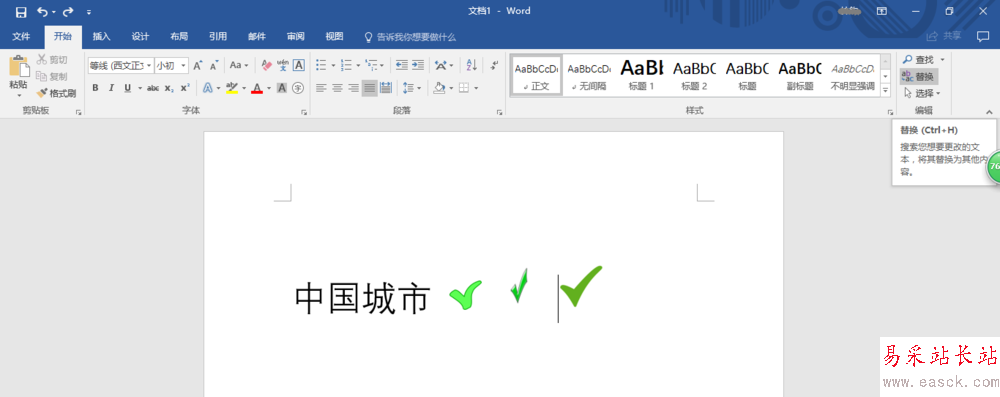 3、點擊"開始→編輯"功能區,選擇"替換"。