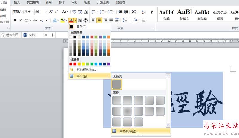2、選擇文字內容,執行開始-字體顏色-漸變-其他漸變命令,調出設置文本效果格式對話框。