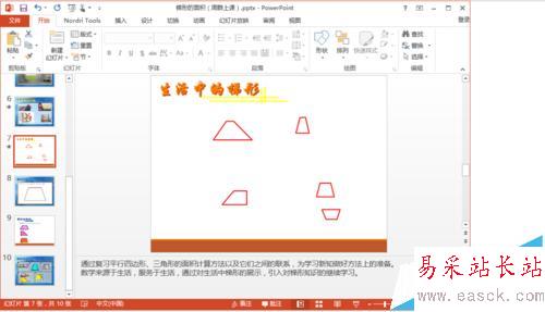 1、使用PowerPoint2010打開一份已有的課件,可以查看到該ppt中很多頁面中已有備注信息。