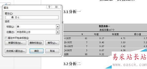 3、插入你的表,選擇你的表,插入題注,標簽選擇表,位置選擇所選項目上方。圖就選擇標簽圖,位置就選所選項目下方。確定,即可。另外可以設置自動插入題注,即你插入圖片就可以自動給你加上題注,但是小編一直弄不成功……只能手動了。