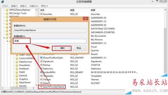 雙擊該新建的字符串值,然后修改數值數據為百度,點擊確定: