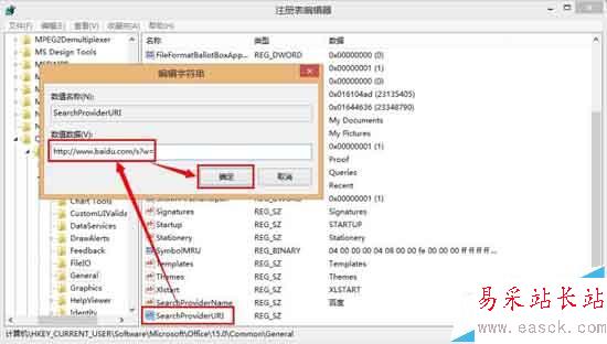 同樣的方法創建字符串值SearchProviderURI,數據數值為 http://www.baidu.com/s?w=: