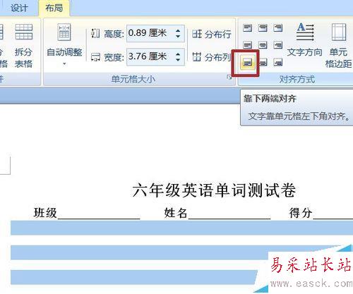 7、表格文字的對齊方式,選擇靠下兩端對齊。